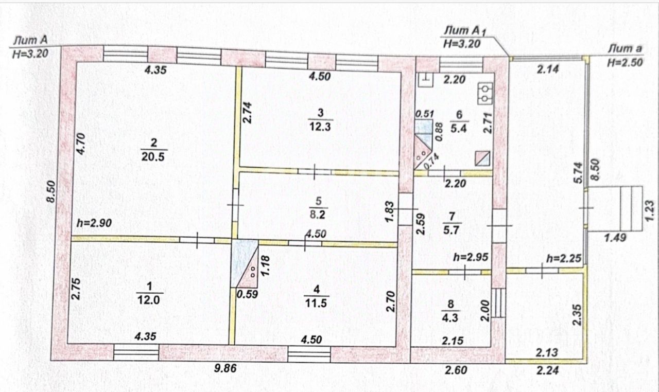 Высота потолков: 2,9 м.