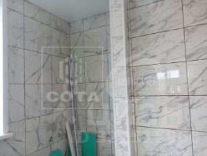 Отделка полная: потолки натянуты, двери установлены, пол - частично плитка, частично ламинат, обои поклеены.