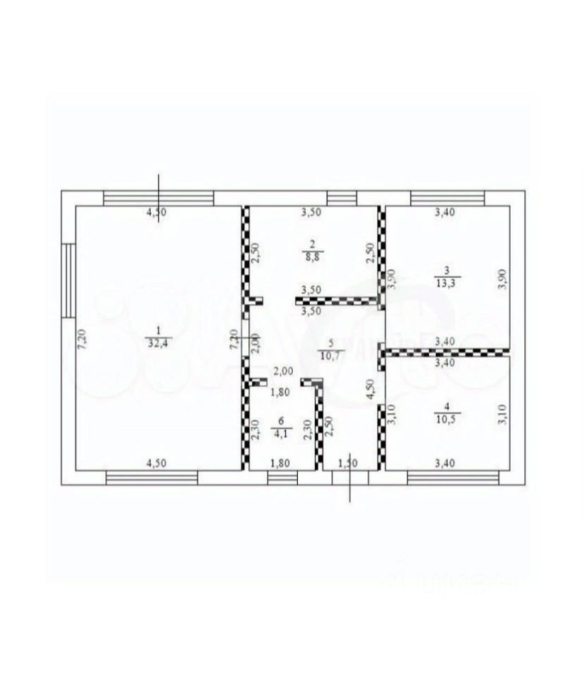3 изолированные комнаты ( 13 кв.м, 10 кв.м, 9 кв.м) и большая кухня-гостиная 32 кв.м.