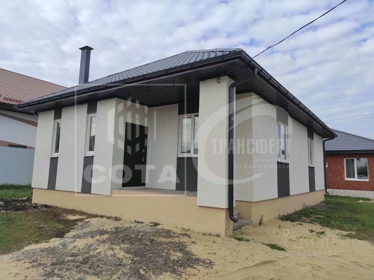 Построен из газосиликата 300 мм, утеплен минватой 50 мм, облицован декоративной штукатуркой. Кровля - металлочерепица, фундамент леточный армированный, на полу полусухая стяжка, качественные пластиковые окна.