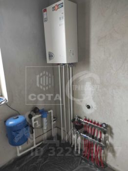 Дом подключен к коммуникациям: газовое отопление с двухконтурным настенным котлом, теплыми полами во всех помещениях и радиаторами, скважина 48 м с погружным насосом и автоматикой, канализация - сливная яма на 3 кольца, электричество.