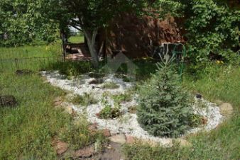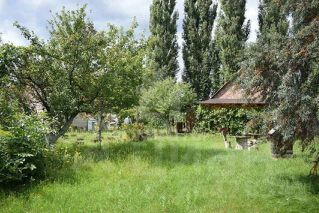 Посажен сад - яблони, груши, сливы, черешня, облепиха, кустарники - смородина и крыжовник, несколько сортов винограда. Также разбит цветник из роз и многолетних цветов. На участке расположены колодец и погреб.