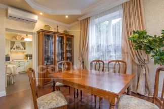 Отделка выполнена из дорогостоящих импортных материалов- полы массив дуб, берёза и итальянская плитка; двери из массива бука, сантехническое оборудование производства Италия; итальянская кухня из массива дерева укомплектована техникой Smеg.