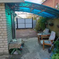 При входе в дом имеется навес, где можно посидеть и отдохнуть. Рядом мангальная зона.