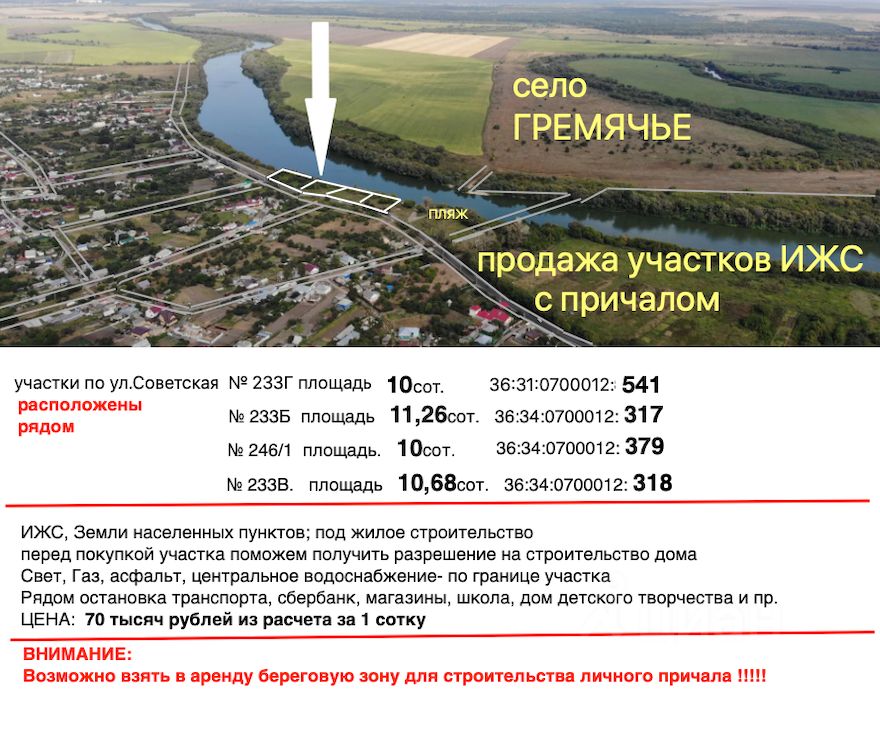 Продам участок в селе Гремячье Хохольский р-он Воронежская область; ул. Советская