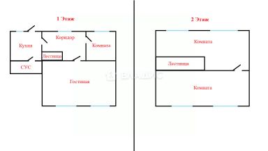 • Первый этаж: летняя кухня, кухня, комната, гостиная.