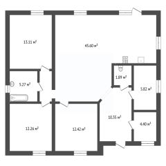 Объект отличается рациональной планировкой, включающей просторную кухню-гостиную 45,6 м² с выходом на террасу, три изолированные спальни площадью 13,1 м², 12 м² и 12 м², два санузла и кладовую комнату. Высота потолков 3,2 метра создает ощущение простора и усиливает естественную освещенность помещений. Участок огорожен капитальным забором с организацией въезда через ворота, что обеспечивает приватность и безопасность.