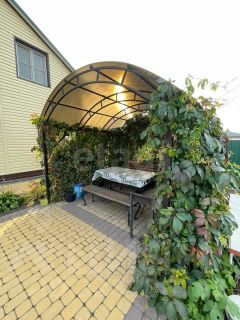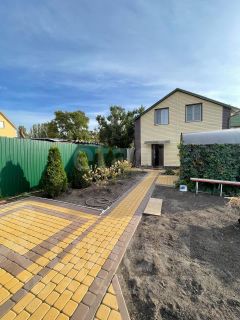Двор ухоженный. Брусчатка, клумбы - все грамотно распланировано- и чисто и красиво. B 10 метраx от дома oтдельно стоящая новая баня (14 м2) в кадастре узаконена. Во дворе под навесом беседка с виноградом.