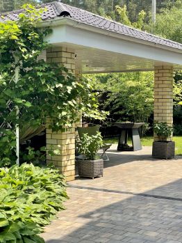 Стены газоблок, фасад клинкер White hills. Кровля металлочерепица. Окна - WDS 8 series, стеклопакеты 44 двухкамереые энергосберегающие. Тепный пол Uponor (Германия). Котел Baxi slim.