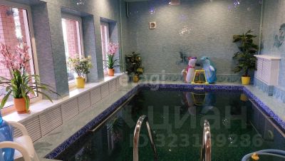 Гостевой дом площадью 175 кв. м включает банный комплекс с сауной и бассейном (3,55 м, глубина 3 м), кухню (20 кв. м) и холл с действующим камином на первом этаже.