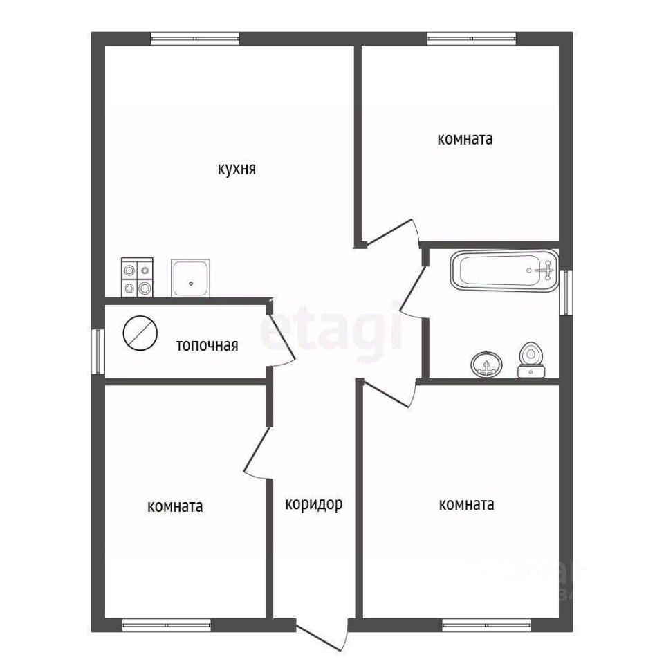 Современная планировка: уютная кухня , три светлые спальни создают комфортное пространство для вашей семьи. Сан узел совмещенный 2.3 на 2.3 метра.