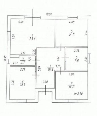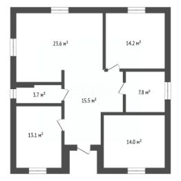 отапливаемая площадь 93 м2, площадь застройки 114 м2 большая кухня-гостиная 25 м2, три изолированные комнаты площадью: 15 м2; 13 м2; 13 м2, совмещенный санузел, отдельная бойлерная, большой холл 10 м2.