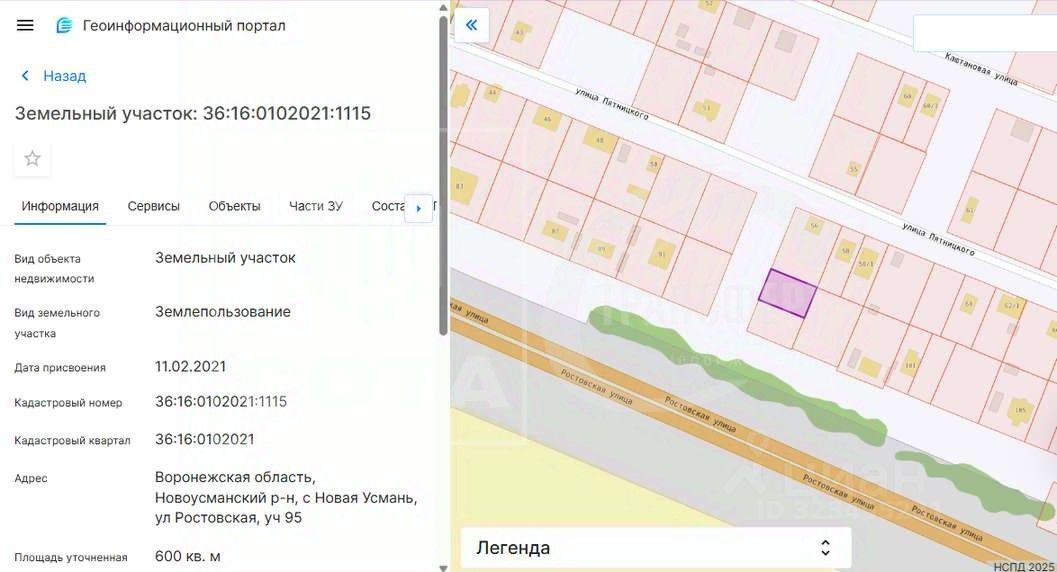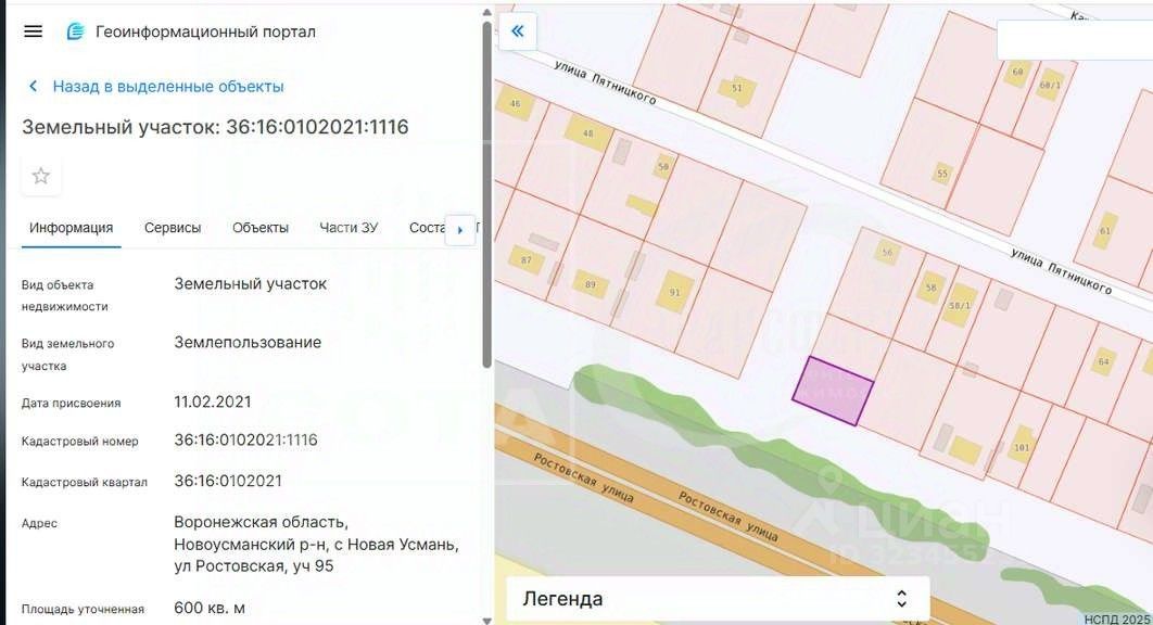 Продается земельный участок в Новой Усмани на улице Ростовская 95.
