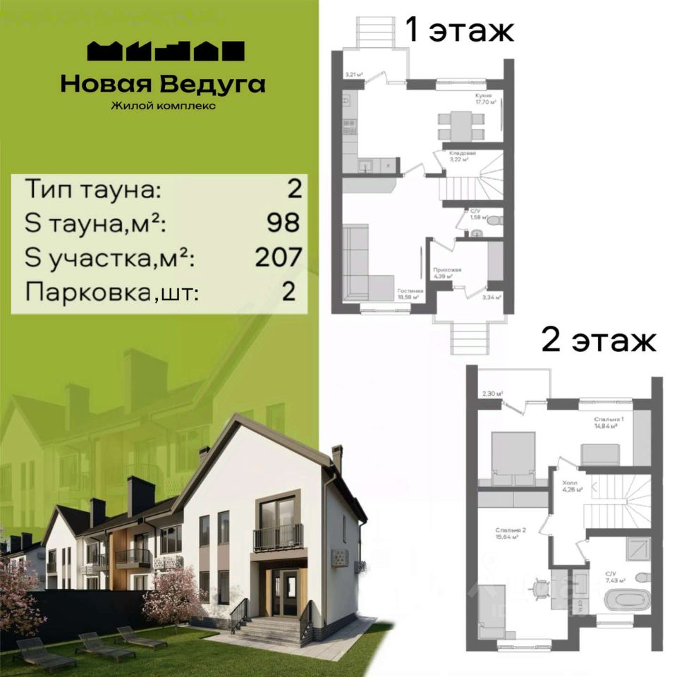 Таунхаус 98 кв.м с участком 207 кв.м в ЖК "Новая Ведуга"