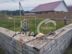 На участке заложен фундамент 9х10 для будущего дома с коммуникациями.