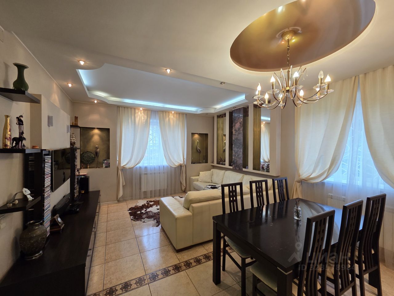 Дом с уютной, продуманной планировкой и интересным интерьером. В доме два этажа и полуцокольный этаж. На минус первом этаже расположены сауна, комната отдыха, спортивный зал с зеркальными стенами, техническая комната, санузел. На первом этаже — кухня с раздвижной зеркальной ширмой, просторная гостиная, комната в восточном стиле и санузел. На втором этаже — две спальни, кабинет, комната с домашней сценой, санузел.