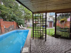Участок ровной формы, с ландшафтным дизайном, оснащён системой автополива. На участке есть большая беседка с зоной барбекю, открытый бассейн с фильтрацией и детский домик. Для автомобилей предусмотрены гараж с автоматическими воротами и полноценное парковочное место во дворе.