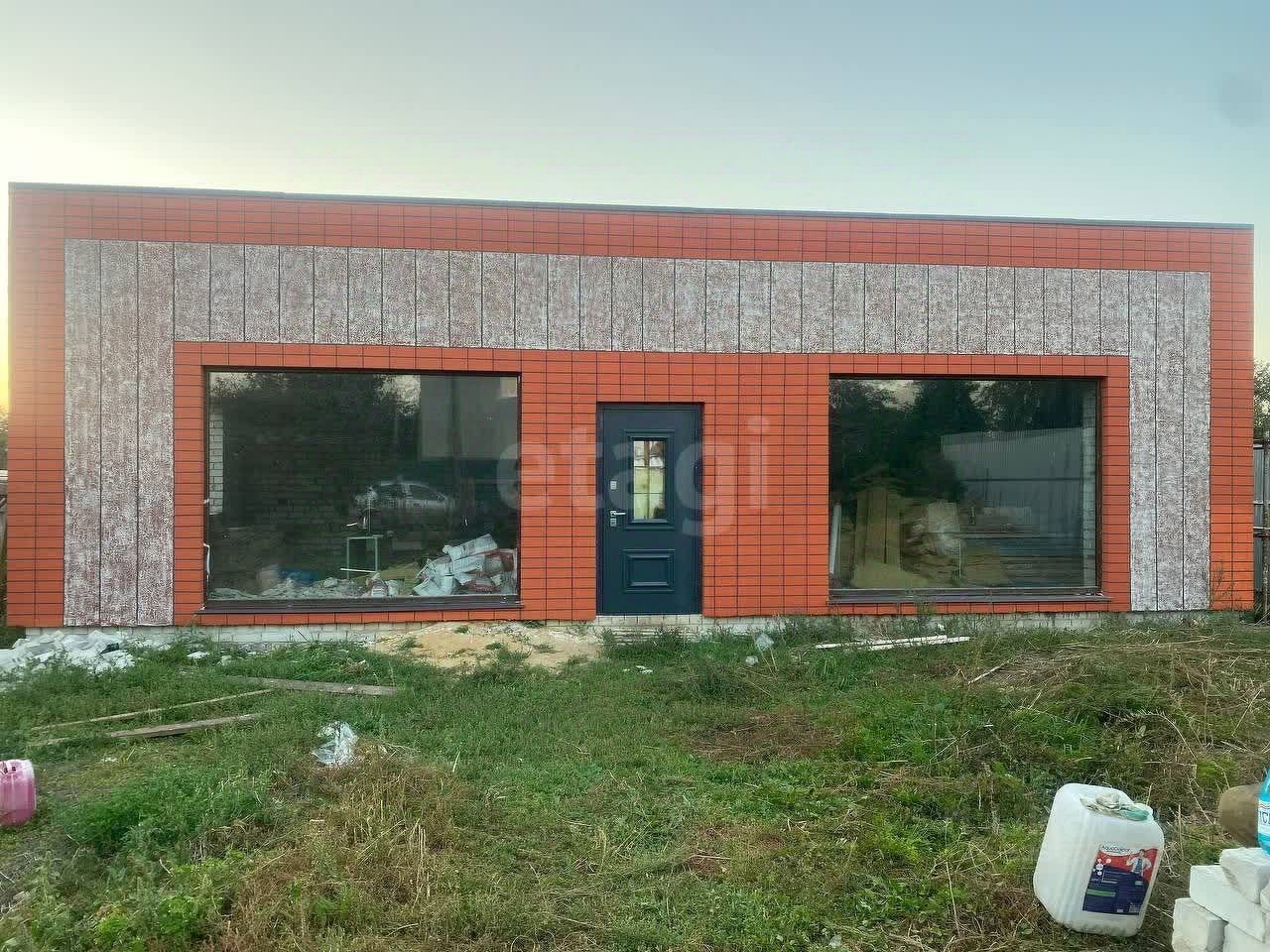 В доме панорамные окна, которые находятся в будущей столовой, три спальные комнаты и кухня. Строился для себя, крыша односкатная с толстым утеплителем, стены в полтора кирпича. Скважина, сливная яма, свет, газ проходит по улице рядом с калиткой. Рядом домик где можно проживать пока идет строительство. У Вас есть возможность воплотить свои фантазии в этом доме и на этом участке, не тяните. Документы есть и на дом и на участок.