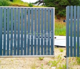 На участке по фасаду установлены 6 метровые откатные ворота , забор в половину участка, плюс готовый свайный фундамент .