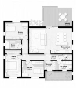 Функциональная планировка - просторная кухня гостиная 43 кв. м. с выходом на террасу 20кв.м. , 3 изолированные спальни (14, 15 и 17кв.м.), раздельный санузел, котельная, коридор и удобный холл при входе, где есть место под шкаф.