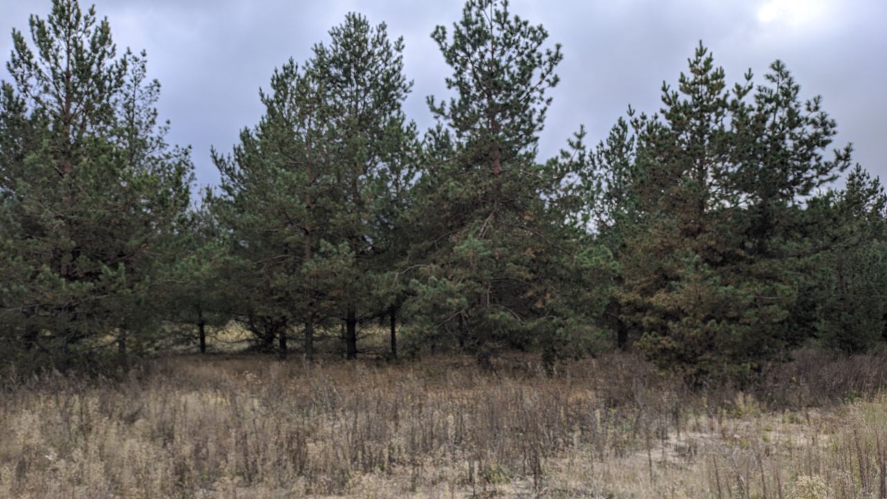 На участке растут сосны, и если грамотно спланировать расположение дома, то из окон будет открываться красивый вид на деревья .