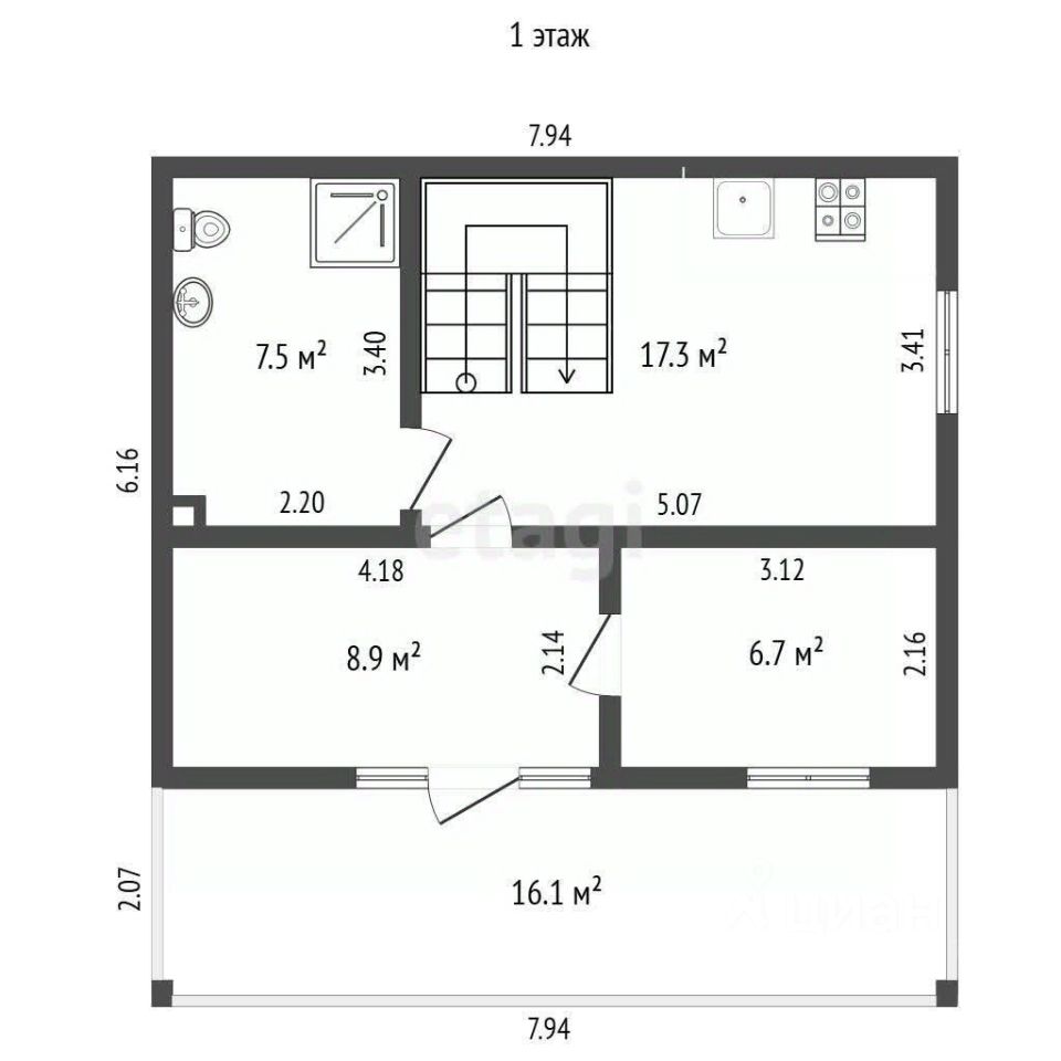Комфорт внутри: здесь предусмотрено целых 8 жилых комнат и два удобных санузла и просторная кухня.