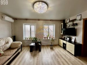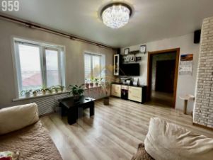 На первом этаже расположена кухня, совмещенная с гостиной, санузел, подсобное помещение с погребом. Напольное покрытие - плитка, с установленной системой "теплый пол".