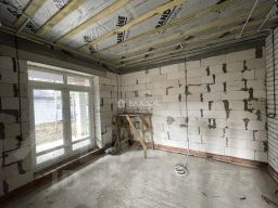 •Стены внутренние несущие 300мм - кладка из газобетонного блока; перегородки 120мм - кладка из силикатного кирпича.