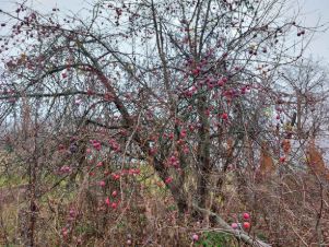 На участке произрастают плодовые деревья: абрикос, яблони, черешня, сливы.