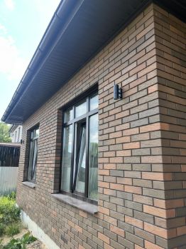 Стены: газосиликат 300мм, 20мм вент зазор, облицовочный кирпич ( Баварская кладка).
