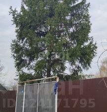 На участке остался только забор и здоровая яркая атмосферная елка. Забор по фасаду - профнастил шоколадного цвета, по периметру - сетка рабица. Есть функциональные ворота с засовом и калитка с рабочим замком.
