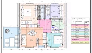 В доме три спальни (12м, 12м, 15м), кухня гостиная 23 м, высота потолков 3 м.