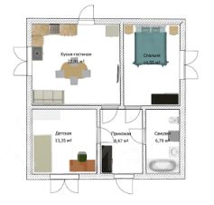 Две изолированные комнаты (13 м² и 15 м²) спальня и детская или рабочий кабинет. Если вам нужна отдельная комната, чтобы работать из дома, то это ваш вариант.