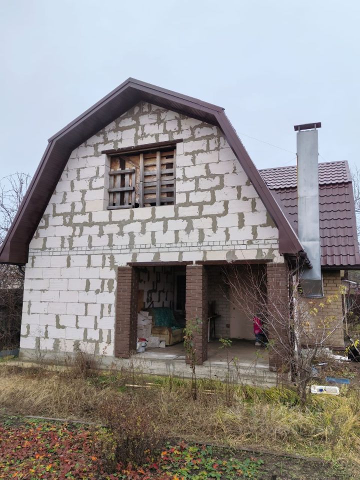 кирпичный, по первому этажу площадь 55кв,по второму мансардному этажу 20кв. Крыша новая, покрыта металочерепицей, установлены водостоки, сделанна отмоска. Так же в 2020г. была построена пристройка из газосиликата, в которой 1этаж зона терассы, площадью 16кв и помещение, планировавшееся под санузел площадью 10кв и 2 этаж комната 20 кв. Дом полностью газифицирован, по 1 этажу проведено отопление, в радиаторах залит антифриз, собственная скважина глубиной 27м. Так же в доме есть хороший погреб, печка и дровяной камин, который создаст приятную атмосферу долгими зиминими вечерами.