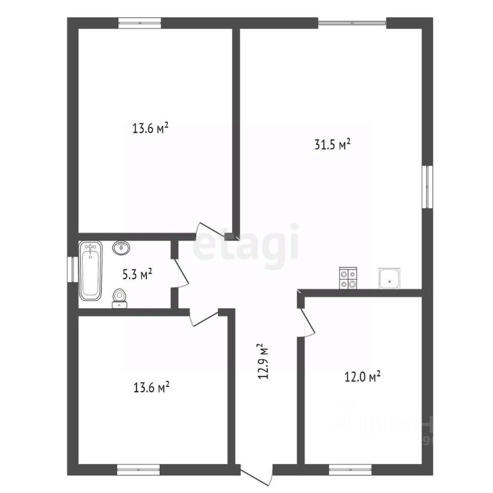 Продается новый одноэтажный жилой дом площадью 90 м² в районе "Радуга" в п. Новая Усмань на участке 5 соток. Высота потолков 3 метра. Кухня-гостиная с выходом на террасу, три спальни, прихожая, санузел.