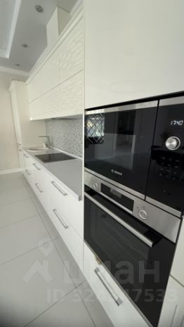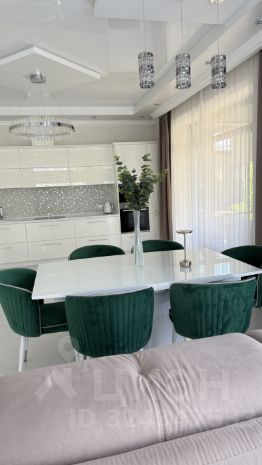 - Просторная кухня-гостиная с выходом на остекленную летнюю веранду. Итальянская вместительная кухня с фрезерованными фасадами в эмали. Механизмы Blum. Встроенный холодильник. Техника Bosch.