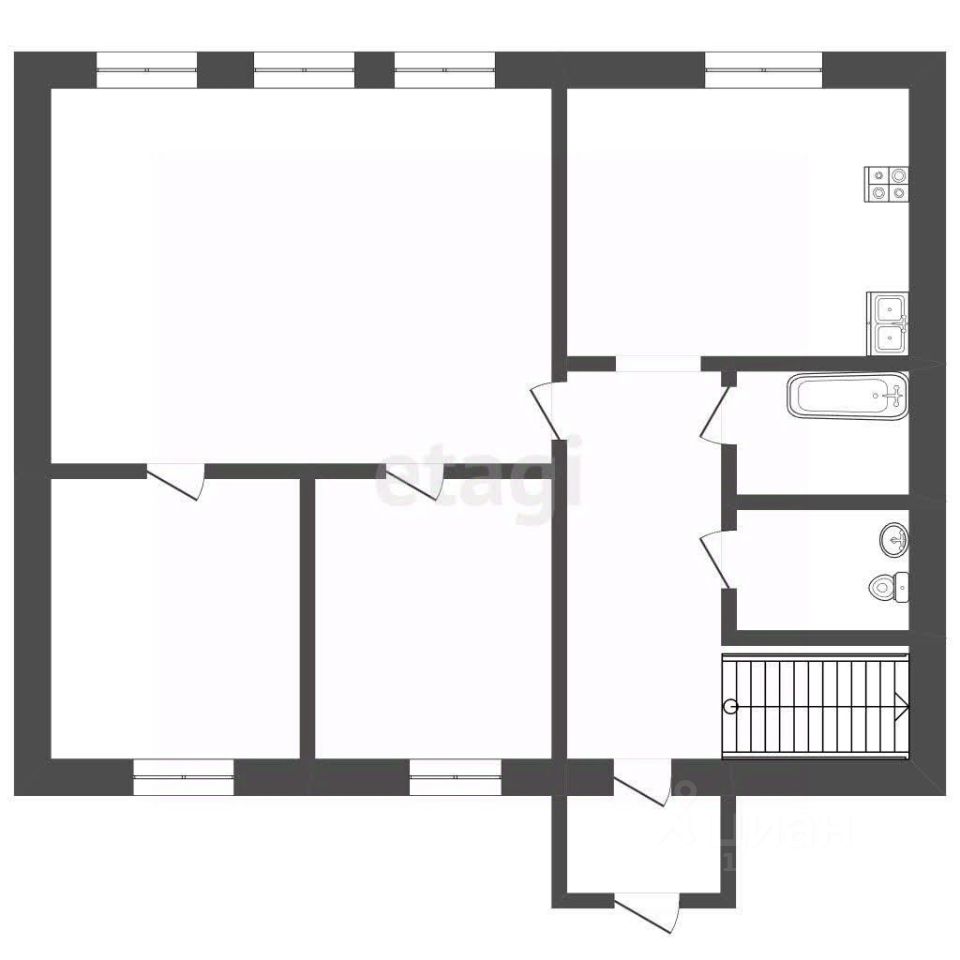 2 изолированные комнаты (спальни), большая гостинная. Возможность обустроить мансарду.