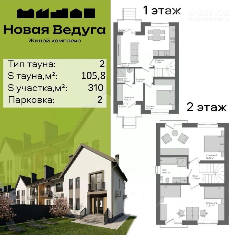 2-х этажный ТАУНХАУС 4-ЕВРО в Яблоневом квартале ЖК НОВАЯ ВЕДУГА с.Гудовка Семилукский район!!!