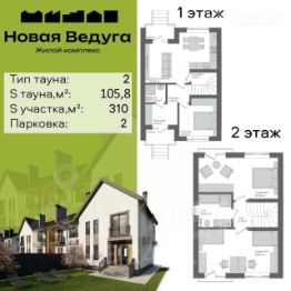 Общая площадь Таунхауса 105,8 м2, участок 3,1 сотки, 2 парковочных места в долгосрочной аренде.