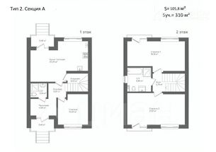 2-й этаж: 2 больших спальни 19,18 и 21,61 кв.м, большой санузел 6,84 кв.м с окном, 2 французских балкона.