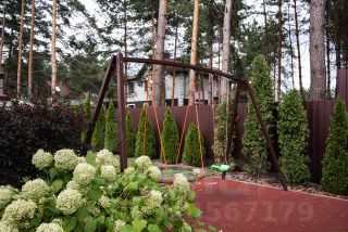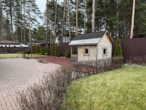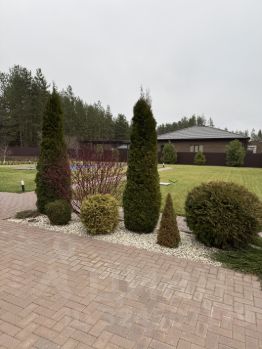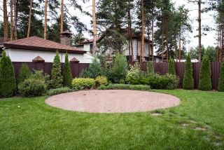 По всей территории газон с системой автополива Rain Bird. Проложены дорожки из плитки для комфортного перемещения по участку.