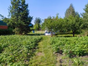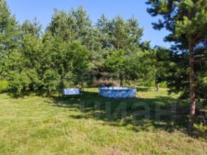 Участок большой и ровный, обнесен забором. Здесь растут плодовые деревья и прекрасные сосны. Есть возможность и для размещения бассейна, мангальной зоны, хозпостроек.