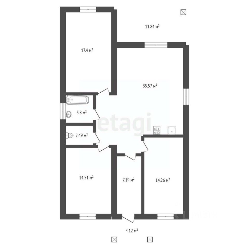 Дом уютный и просторный, включает в себя: просторную входную группу (можно застеклить), холл, кухню- гостиную с выходом на террасу, три просторных спальни и санузел.