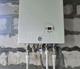 Дом построен на монолитной плите 40 см. Внутренние стены из газосиликата, снаружи крипич. Мягкая кровля. Газ заведён и подключен к двухконтурному итальянскому котлу. Электричество тоже подключено.