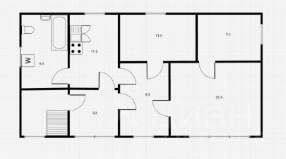 2 изолированные спальни — 11.0 м² и 7.1 м²