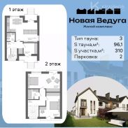 Общая площадь Таунхауса 96,1 м2, участок 3,1 сотки, 2 парковочных места (в долгосрочной аренде)