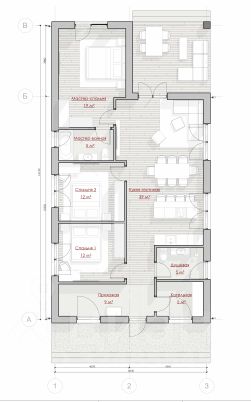 Гостиная совмещенная с кухней и столовой, с возможностью зонирования, расположена на площади 36м2, с выходом на террасу, также имеется хоз. блок.