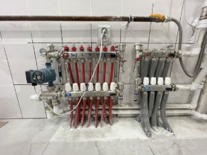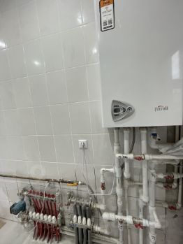 В дом заведены все необходимые коммуникации: газ (двухконтурный котёл 24 кВ.), вода (скважина на улице в кольце), электричество с заземлением (Провод ГОСТ), отопление (радиаторы толщиной 100мм, тёплые полы на 1 этаже без отступов с шагом 150мм, коллектор с расходомерами и термостатом), канализация (сделана из оранжевой трубы), проводка под кондиционеры, интернет и тв в каждой комнате.