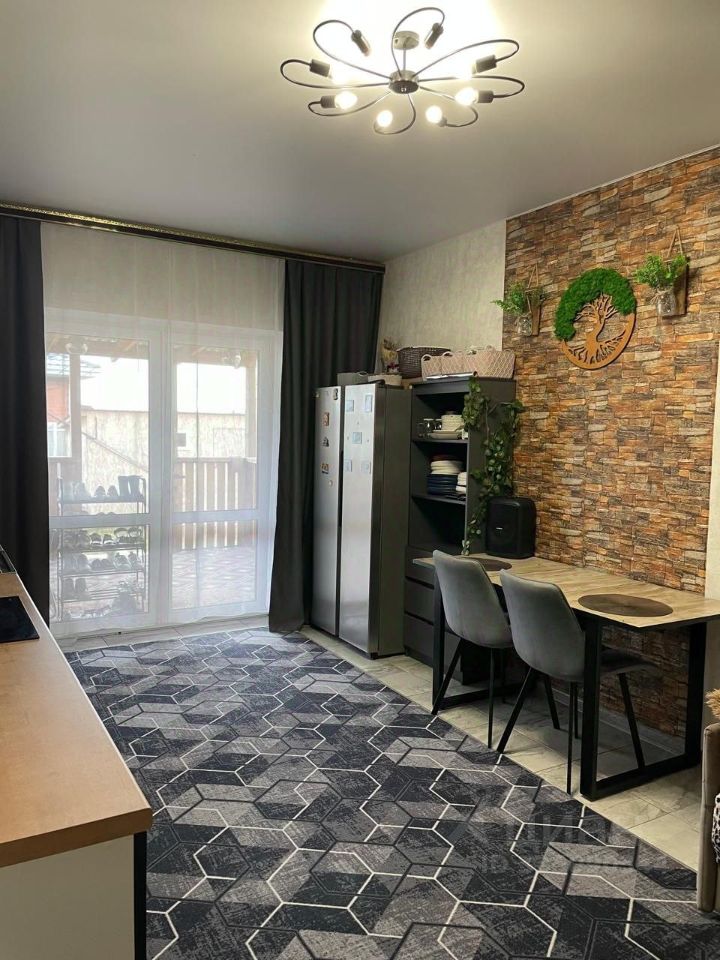 3 больших спальни и кухня-гостиная 18м. санузел совмещен. Потолки высокие 3м, тёплый пол по всему дому. Мебель частично остаётся. По ремонту все хорошо, делать дополнительно ничего не нужно.