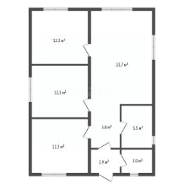 Пространства в доме хватит для всех - 3 изолированные спальни + кухня-гостиная и санузел.